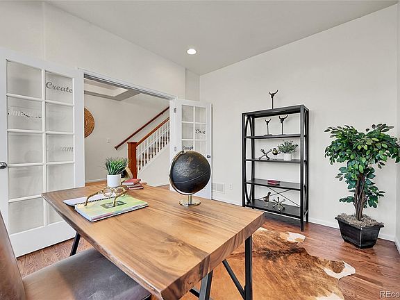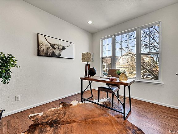 Welcome to this three bedroom, three bathroom home in Turnberry Meadows! This move-in ready home offers ample amounts of upgrades including fresh exterior and interior paint, new carpet, new hardwood flooring, a new roof and more! Upon entering, you will be greeted by a spacious and bright office space, easily accessible from anywhere and great for those who work at home. The gourmet kitchen is every chef's dream and offers an eat-in concept. Enjoy the ample amounts of cabinetry, spacious countertops and easy access to anywhere in the home, perfect for hosting gatherings with friends and family. All appliances are included with the home, talk about move-in ready! The living room is a dream and features high ceilings and large windows allowing light to shine in. Plenty of space and anchored by a charming fireplace, great for keeping you warm on those chilly Colorado days. Head upstairs where you will be greeted by a spacious loft, an ideal bonus area for just about anything you can think of! The primary bedroom truly feels like an oasis and offers large windows, high ceilings, a ceiling fan and plenty of space for any furniture design layout you can imagine. Enjoy the easy access to anywhere including the private, five piece en-suite bathroom and large walk-in closet. Two additional bedrooms are found on the upper level, allowing for plenty of room to grow. But wait...there's more! Head downstairs to the unfinished basement, brimming with possibility. This area is awaiting your personal touches and would be great for a movie room, game room, teen retreat, or anything you can think of! You'll love living in Turnberry Meadows! Make a splash and meet your new neighbors at the community pool or enjoy the many walking paths and the playground. Great location offering easy access to just about anywhere including I-70, E-470, I-225, Denver International Airport and Downtown Denver. Ample amounts of shopping, dining and entertainment options are also just a quick drive away!