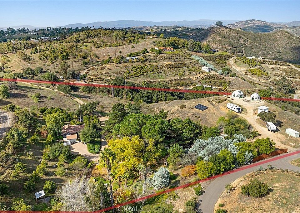 Embark on a once-in-a-lifetime journey with the enchanting Ecotopia Ranch, a sprawling 11+ acre permaculture haven nestled in the rolling hills of North San Diego County. This unique, adorned with a Tuscany-style 3-bed, 1-bath home, invites you into a private oasis boasting natural springs and panoramic views of Pauma Valley and Palomar Mountain. Whether envisioning a hilltop countryside estate, cultivating agriculture, crafting an ecotourism venture, or establishing a serene retreat, this property's expansive canvas offers limitless potential. Boutique-style charm radiates from every corner, making this a rare find. A promising circular pad awaits your grand residence, providing breathtaking 360-degree vistas. Currently hosting two geodesic domes for entertainment, private retreats, or events, the property is a versatile canvas for your dreams. A horticultural paradise awaits with abundant groves featuring citrus delights, avocados, lemons, limes, Valencia oranges, tangerines, pomegranates, pineapple guavas, persimmons, apricots, asian pears, barlet pears, loquats, pecans, cherry, apples, carob, mesquite, peaches, plums, jujubes and more! Explore walkable meditation gardens, a medicinal herb garden, kitchen garden, food forests, and native gardens, creating a botanical wonderland. Traverse your private hiking trail, meandering through lush seasonal creek landscapes and enjoying waterfalls during the rainy season. The oak riparian woodland, palms, pine trees, cottonwoods, acacia grove, and even a California redwood enhance the peaceful setting. With A70 agricultural zoning, the property opens doors to diverse ventures and ecotourism. Operating as a certified small hobby farm with agricultural water rates, it embraces sustainability with a solar panel array and eco-friendly features. Discover a captivating haven with transformed Tuff Sheds, geodesic domes, and additional outbuildings, offering ample space for growth and thoughtfully graded Glamping pads with RV hookups. Ecotopia Ranch invites hobbyists, homesteaders, entrepreneurs, and visionaries to seize this extraordinary chance. Schedule a viewing today and unlock the full potential of this remarkable ranch!