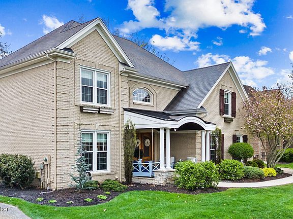 Stunning Golf Course Home in Prestigious Glen Oaks | North Oldham County School District! Located on Hole #1 of the GlenOaks Golf Course, this exquisite two-story traditional-style home is nestled in the sought-after Glen Oaks neighborhood and award-winning North Oldham County school district. Thoughtfully designed with an open floor plan and upscale finishes throughout, this home is perfect for everyday living and stylish entertaining. Step inside to find beautiful hardwood floors throughout, including newly installed hardwoods on the second level and angled hardwood flooring in the spacious primary suite. The home showcases meticulous craftsmanship with custom wainscoting, built-ins, and a split grand staircase connecting the foyer and kitchen. The Amish-crafted kitchen is a chef's dream, featuring top-of-the-line stainless steel appliances including a 36" gas range, an 8-foot island with prep sink, leather-finish granite countertops, and a custom vent hood with a stained beam accent. Enjoy an abundance of natural light in the large great room and sunken living room, both overlooking the lush backyard and golf course. The main floor is perfect for entertaining with its seamless flow and tasteful finishes. Upstairs, the fully renovated primary suite impresses with a tray coffered ceiling, dual walk-in closets, and a luxurious bathroom featuring granite countertops, custom cabinetry, a corner Jacuzzi tub, and a walk-in shower. Three additional bedrooms are generously sized. The finished basement adds even more living space with a media room, large family area, a flex room ideal for guests, and a full bath. A 2023 water heater and dual high-efficiency HVAC systems ensure comfort and peace of mind and plenty of extra storage in the attic. The finished basement features a large room perfect for a theater/media room and living room combo, a good sized area for office or for guests to stay and a full bathroom. Plus, there is rough-in plumbing in the main basement room closet to add a wet bar or kitchenette. Outside, the home is just as impressive. The welcoming front porch with a barrel wood ceiling and double mahogany doors presenting with a Bedford limestone porch surface and sidewalk. The backyard features a beautifully designed stamped concrete patio with intricate details, offering a peaceful space to relax or entertain while enjoying private golf course views. Additional highlights include upgraded light and plumbing fixtures, a new stained-style garage door, extra attic storage with pull-down access in the laundry room, and proximity to Norton Commons, the YMCA, shops, restaurants, hospitals, Costco, and more. This home truly has too many upgrades to list come see it for yourself!