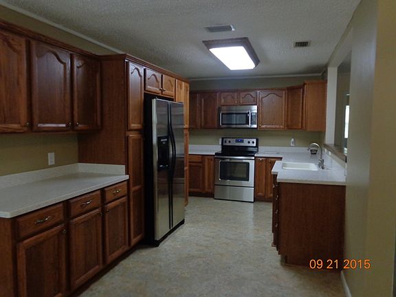 Recently remodeled kitchen with new cabinets and counter tops. Stainless appliances - stove, dishwasher, refrigerator, microwave. Large indoor laundry room. Covered and screened patio on back of home. Detached 2 car garage, large storage building and fenced in back yard. This home will be managed by the owner.