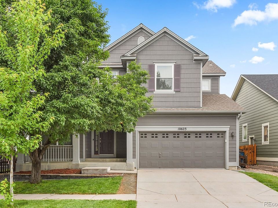 Enjoy your favorite beverage on the adorable front porch! Move in ready! Great location in Turnberry Community, close to schools, parks & the pool! The kitchen showcases a tiled backsplash, elegant 42" cabinets w/crown molding & a cozy eating nook. Appliances stay; new microwave. Dishwasher 2/3 yrs old. Double oven. Formal dining area has hardwood floors & is open to the family room, great for entertaining. The family room has new carpet, a gas fireplace for those cold Colorado evenings and a ceiling fan on the hot summer days. Office/bonus space with carpet & built in desk area. Main floor bedroom. Powder bath with shower. Laundry with shelves off the garage. Up the vaulted staircase to the second floor unwind in your game room/loft space! Master bedroom, 2 guest bedrooms & guest bathroom upstairs. The over sized master suite has new carpet, a huge walk in closet & luxurious 5 piece master bath with the vanity having upgraded counter height sinks, oval soaking tub, large shower & separate water closet. Finished open basement with 1/2 bath & stained concrete floors. Nice storage. Sump pump. Humidifier. Two car attached garage. You'll love the trex deck in the fully fenced backyard! Shed for extra storage. Sprinklers in front & back; new sold & mulch last year. Dual ac & furnaces. UV lights on furnace. New water heater. New windows upstairs Jan 2021. Exterior paint: 2019. Water softener is turned off, the town will send a note when to plug it back in. Nest doorbell & kitchen appl stay. Carpet just got cleaned.