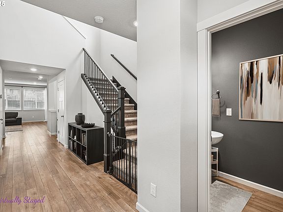 This corner property is very private and one of the most coveted in the neighborhood with a highly functional layout, only one neighbor, and backing to a quiet park with greenspace. Main level is open and modern with gourmet kitchen, dining room, great room, gas fireplace, office area with built-ins, and half bath. Upstairs are four bedrooms and two full baths. Large primary suite with spa-style bath, a walk-in closet, and great views. Property feeds to highly rated schools of Scouters Mountain, Happy Valley, Adrienne Nelson.