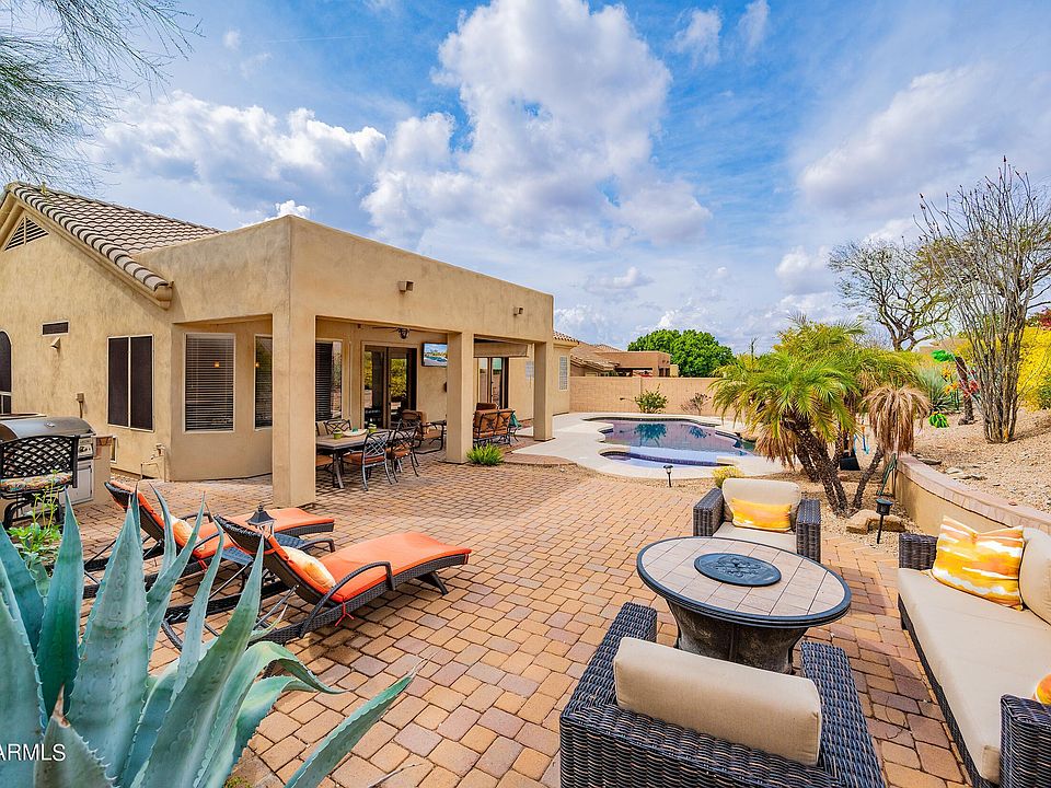 Welcome to this incredible home in gated Sonoran Fairways adjacent to The McDowell Mountain Golf Club! Oversized and ultra private corner lot with highly desirable north/south orientation. Quality finishes throughout, kitchen boasts solid Alderwood cabinets, soft close drawers and slab granite counters. Premium travertine flooring throughout. Spacious Owner's retreat with French doors that opens to the pool and backyard. oasis. Current Owner thoughtfully added a 3rd ensuite full bath to create a private guest suite. The spectacular Sonoran Retreat backyard with heated pool and spa, built in gas BBQ, embodies true outdoor Arizona living! Community amenities include clubhouse, tennis, basketball, heated pool and spa and 18 hole public golf course. Endless miles of walking trails that wind throughout McDowell Mountain Ranch. Arizona Lifestyle at it's finest!