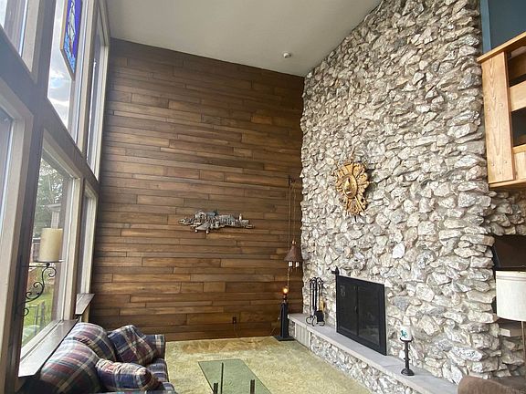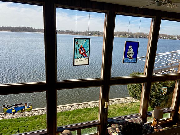 Enjoy this amazing view. Wonderful river front property at the largest point of Baugo Bay. As you enter the home you are immediately greeted with a balcony overlooking a wall of windows. The balcony space is perfect for an office or extra living space. Check out the stone fireplace wall. There is also a pier that has not been installed. Schedule to view this property before it's gone. Tear off roof 10 years old. Water heater new 2022. Agents see agent remarks.