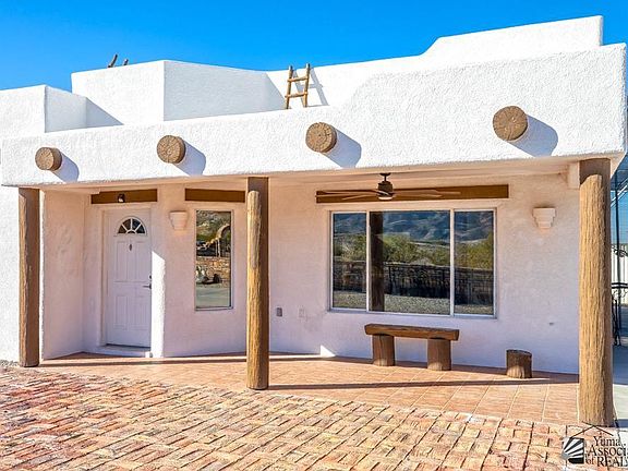 Stunning 2 BR 1.5 BA 1,250 ft property built 2001 at the edge of the mountainous desert. Breathtaking views by day, stargazing by night. Covered front and back tiled patios with lighting, fans/remote control, 6 ft privacy walls, outdoor bathroom with AC. Large shed with electric. Tile floors. Shaded RV port. Concrete driveway with sliding gate. Pedestrian walkway with gate. Barrier-free movement throughout the house. New central AC 2021. Water heater 3 yrs. old. New dishwasher 2023. Easy desert landscaping.