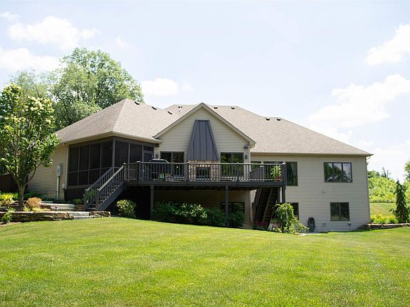 Call it French Provisional or Classical European style, this custom built- 1 owner, large executive home will surely please. Nearly 7 Ac's of beautiful property w/large lawn, pasture, woodlot & small pole barn. A rare find in NW Allen County! Gorgeous architectural stone front & split 4-car garage. Exceptional landscaping w/rock features that offer inviting outdoor venues. Sweeping views from an elevated deck w/screen porch & FP for cozy outdoor evenings. Upon entry you'll find a cavernous space in 2-story foyer w/arched transom windows & double custom entry door. Archways welcome you to the space. Wrought iron stair spindles provide a visually classic look. The MB suite includes large walk/in, private commode, dual vanities, tile surround garden jet spa, & walk-in tiled shower. The GR has custom trimmed pillars, 18' ceiling, & a large bank of windows w/great views of acreage! Custom kitchen w/large granite island, shelving & cabinets; Amish crafted cabinetry, & double oven. A hearth room, w/ stone, 2-sided FP & nook area for meals. 16- foot cathedral. Timeless fixtures & 18-inch ceramic tile flooring. Den w/built-in desk & shelving for work & study. Main floor laundry w/tons of storage/counter space + mud room w/built-in locker shelves. Home has an elevator shaft for future use. Use it now for your decor closets on every level! The Walk-Out basement has a large FR w/built-in shelves, FP, wet bar, & rec room. Exercise/dance area is ready to finish. BR's 2&3 share a Jack N Jill w/split vanity spaces. BR 4 has full bath & reading nook! Located conveniently to Parkview, downtown, and I-69 - all of this on your own private estate!