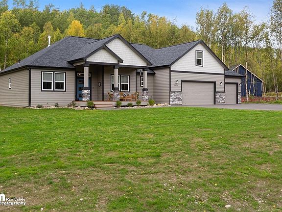 Close to Hatcher Pass. Access miles of Matanuska Moose Range trails via ATV and snow machine from your home. Gorgeous finishes in the expansive main living area w/ vaulted ceilings & stone wall fireplace. Relax in your custom 4 piece master bath. Space galore w/ bonus room over garage, as well as an office and a formal dining area. Just built in 2019.