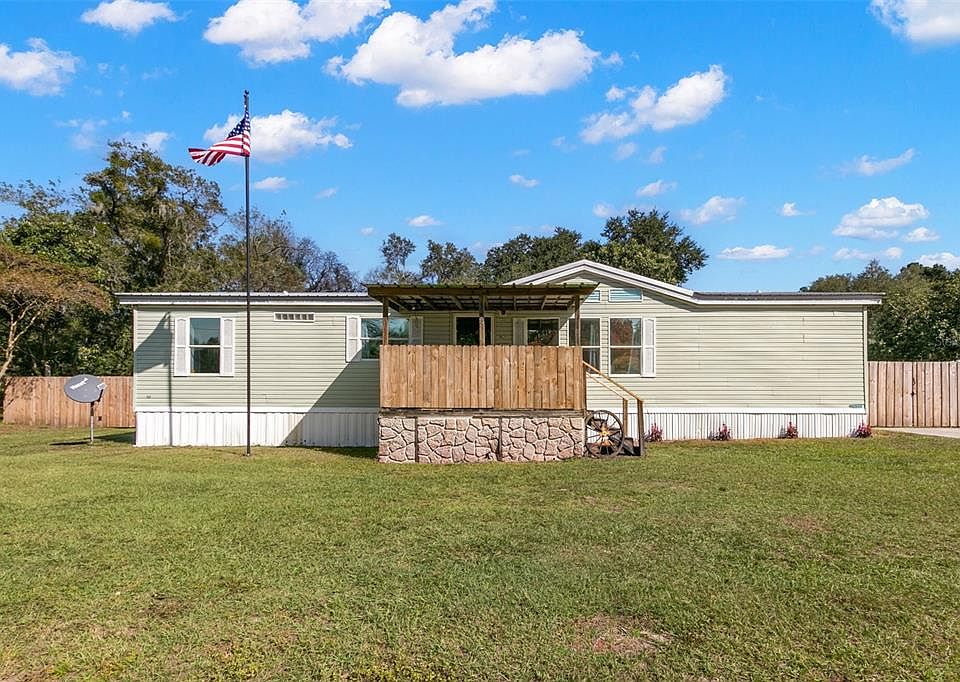 Welcome to this double wide manufactured home that is situated on just under 1/2 acre lot in the sought after location of Lithia! Bring your recreational vehicles while living the country life with no HOA restrictions or CDD fees! This home’s covered entry will welcome you into the GRAND living space that has a working fireplace flanked with lighted arch niches, newer carpeting and a 10 paddle, rustic ceiling fan! The dining room separates the living room and kitchen and makes daily living and entertaining a breeze! The kitchen has loads of cabinetry, a bay area for a small table and a window over the kitchen sink so you can enjoy the scenery during this chore! The split floor plan has a master bedroom that can accommodate oversized furniture and a space for lounging or a desk area! The en suite is UPDATED with dual vanities, a WALK IN SHOWER, new fixtures and hardware! The secondary bedrooms are oversized, have walk in closets and immediate access to the second FULL bathroom that has been UPDATED! The back yard has been given a makeover! Mature trees remain, the yard is cleared and ready for BBQs, pets & play! The fence has dual double door gates and there is a parking pad for additional storage for those heavier items! The METAL roof is newer (2020), the drain field was replaced (2023), septic emptied (2022) and HVAC has a new heater and blower motor (6/2023) making this home MOVE IN READY! Located less than 10 minutes to Alderman’s Ford Conservation Park and Alafia River State Park where you can enjoy boating, GLAMPING, fishing, horseback riding, wildlife viewing and more! You can enjoy nature while being 15 minutes to restaurants and shops!