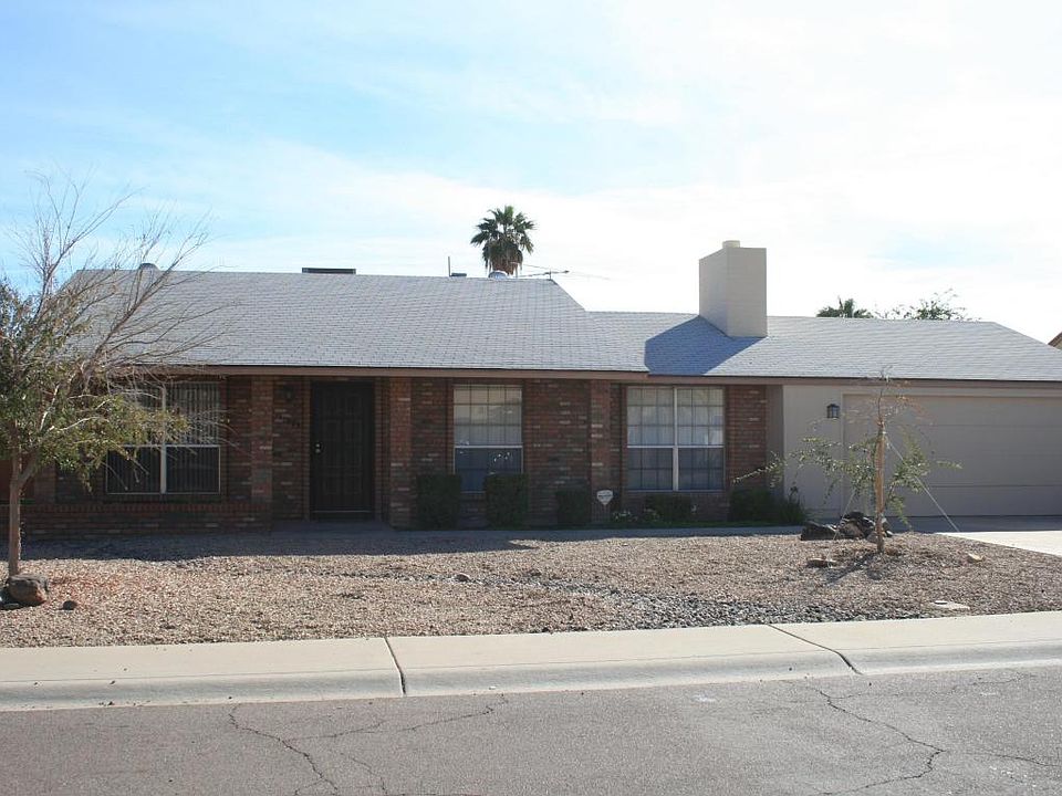 HURRY! THIS ONE WON'T LAST! Hard To Find Single Level Red Brick Home With A Pool In This Price Range! Formal Living Room and Separate Family Room That Has A Beautiful Brick Fireplace * Kitchen Boasts Refinished Cabinets, Breakfast Bar, Nook Area, Fridge & Oversized Windows * Master Bathroom Has Pocket Door Perfect For Guest Use * Skylights in Both Bathrooms * Tiles Throughout Except For Living Room and Bedrooms * Ceiling Fans In Every Room * Lots of Extra Storage Inside Home and In Extra Large Garage * Backyard Features Full Length Covered Patio, Grass Area, Storage Shed, Lemon Tree and Fenced Pool (Replastered Aug 2013) * A/C 2 Yrs Old * Washer & Dryer Also Incl * Minutes to Golf Course, Park West, Tanger Outlets, Cardinals Stadium, Jobing Arena, Arrowhead Mall & 101 Loop Freeway