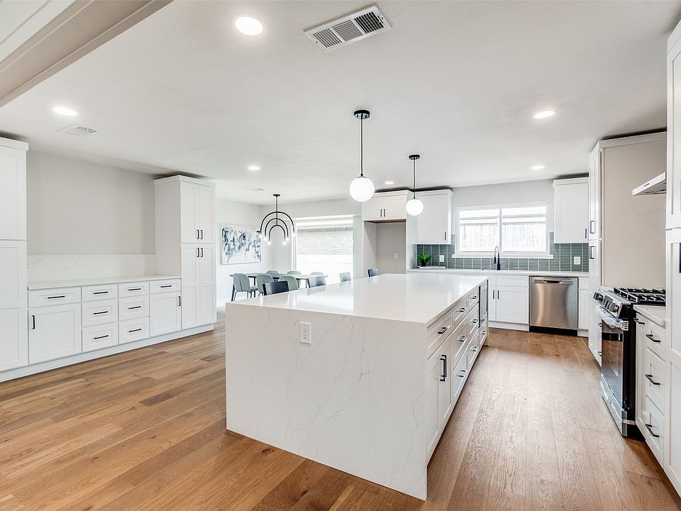 Traditional home with modern flair - 2,460 sf home with 4-bedroom, 2.5-bath gem located within the Highly-Desirable, Wallace Elementary in Richardson ISD - Lake Highlands area. The open floor plan with a spacious layout that enhances both functionality and style. The heart of the home features a charming brick fireplace, vaulted ceiling with wood beams, skylight in main living area. The huge kitchen boasts new appliances, stylish finishes, extra large eat-in kitchen island and ample counter space. Each bedroom is designed to offer privacy with the primary suite providing a serene retreat and en-suite bath. A 2-car rear-entry garage with electric gate offers convenient parking and extra storage space. With its perfect blend of modern updates and classic features, this home is ready for you to move-in. 2024 - mechanicals - electrical and plumbing, windows, flooring, sprinkler system updated, sewer clean outs; 2022 Roof. Seller offering 2-1 interest buy down program. REALTOR® has the details.