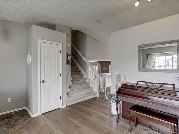 Welcome to this Highlands Ranch home located in the Westridge Village Neighborhood on a quiet cul-de-sac with great mountain views. This home has been well maintained and updated. The main floor features new engineered hardwood floors and neutral paint colors with vaulted ceilings. The kitchen and eat-in space is spacious and has stainless steel appliances including a double oven. The family room has a gas fireplace, with a blower and built-in shelving and storage to either side. Upstairs are 2 bedrooms, a full-size bathroom, and a master suite with an updated 3/4 bath. The walk-in closet in the master has custom shelving. The finished basement features a great room, a powder bath, and the laundry room. Enjoy our Colorado sunny days outside on the stamped concrete patio with a stone retaining wall. The roof was replaced in 2016 with a hail-resistant, class 4 shingle, with a transferable lifetime warranty which will save you money on your homeowners' insurance. The Highlands Ranch Community features many miles of trails, parks, open spaces, and 4 different rec centers you can use and enjoy. ***Please note: no showings until Friday. Matterport 3D tour will be added shortly.