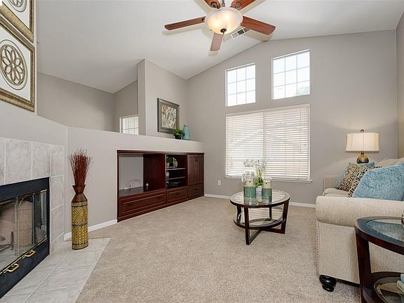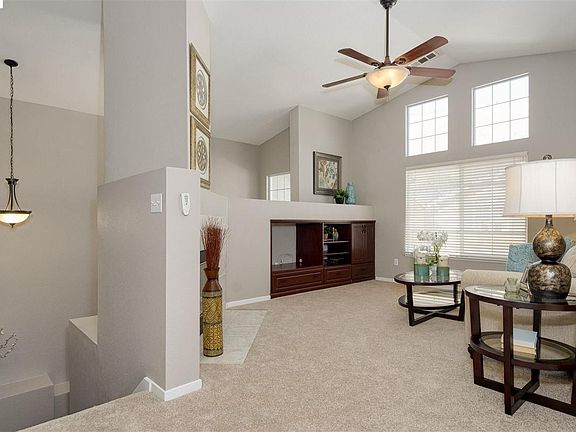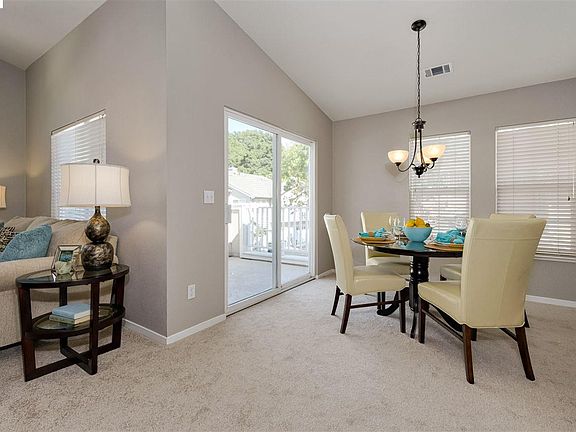 Move in ready offering a private location. New carpet, paint, and an open floor plan with large living area. Custom built in entertainment cabinet. Master suite offers ample closet space, mirrored closet doors and ceiling fan. Bath w/ dual sink vanity & updated flooring. Private patio.