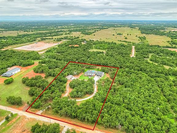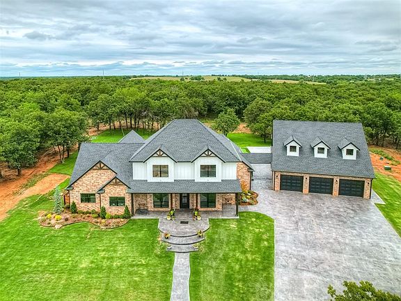 This home sits on 5 acres with an additional 15.83 adjoining acres available. Whether you’re hosting guests, relaxing poolside, or enjoying the scenic tranquility, this home delivers on every level! The open concept kitchen features a Frigidaire Professional side by side freezer and fridge, built-in ice maker, pot filler above the gas range, double ovens, walk-in pantry with motion-sensor lighting, and a spacious butler’s pantry complete with two built-in dog kennels. The primary suite features a luxurious bathroom with a soaking tub, double walk in shower, and an amazing toilet with heated seat and built in bidet! A few additional features of the main floor include lighted shelves on either side of the gas fireplace, guest suite with it’s own full bathroom and private entry, a theater room with surround sound, a walk in safe room, a half bathroom with an exterior door that leads to the pool area, and a motorized entryway chandelier for easy maintenance. Upstairs you will find three spacious bedrooms, each with its own private bathroom and walk-in closet. The upstairs has it’s own HVAC and tankless water heater to ensure year-round comfort. All of the bedroom closets have motion sensor lights, as well as remote controlled shades. Outside you’ll find the entertainer’s dream! A huge covered patio with retractable shades, a spa that overflows into a sport pool with a tanning ledge, an outdoor kitchen with a Blackstone flattop grill, fire pit, putting greens, half basketball court, all surrounded by impeccable landscaping. Off the oversized garage you’ll find a 480sf bonus/weight room with it’s own mini-split. The property also includes 2 whole house generators, a full sprinkler system surrounding the house, a 36x50 insulated shop with electricity, an automatic entry gate, and wood and steel fencing across the front of the property.