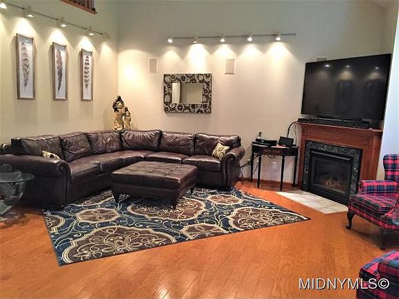 Contemporary style 4 bdrm 3.5 ba home nestled in a nature setting on over 5 Acres in Deer Run estates...Features open quality constructed layout with dramatic roof-lines catering to 3 floors of living space to enjoy, 1st floor master suite & open great room w/frpl. Outstanding amenities such as a spacious hot tub sunroom overlooking the pool patio outdoor entertaining space. Additional lower level kit area for the over-sized 26x26 FR. Access to your own wooded nature trails. see pics for more
