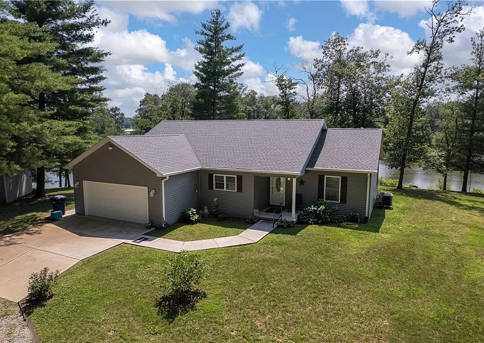 There is plenty of summer left to enjoy this lake front property located on Lake Noji in southern Vigo Co. Views are magnificent from all of the rooms in this newer built ranch. Enjoy the shade from the treed property while relaxing on the wood deck. There is a nice, concrete dock for swimming/boating activities. Inside this 3 bedroom, 2 bath ranch, the finishings are fantastic, with nice Laminate/wood floors & a cathedral ceiling in the great room. The kitchen features granite countertops, beautiful appliances and plenty of room for meal preparation. The 2 car garage is oversized & has plenty of storage space. There is a small storage building for extra space. With beauty in every season to come, this one is a must to check out.
