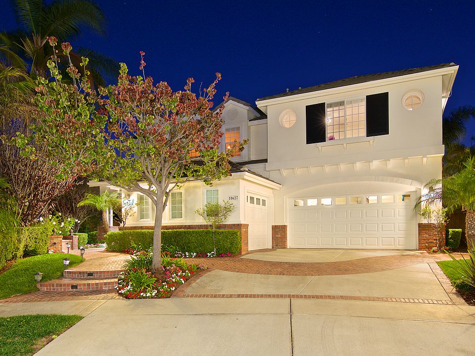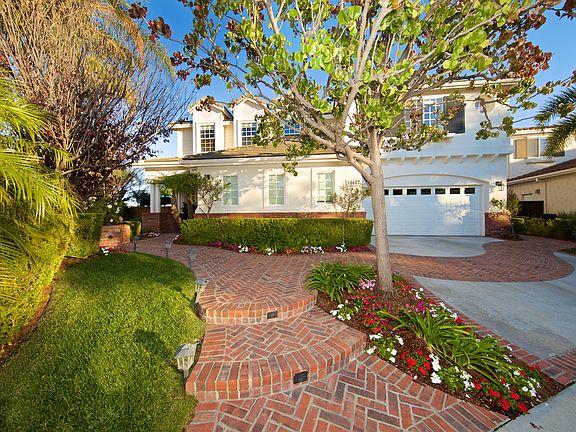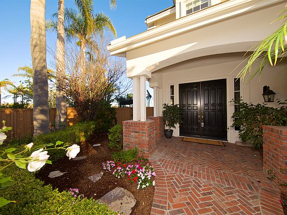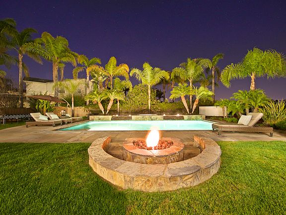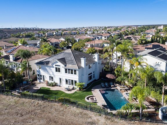 Highly desirable Lexington Plan 3 located on a quiet cul-de-sac in the heart of Carmel Valley. Sprawling 1/4+ acre on a premium panoramic canyon rim lot with stunning sunrises and spectacular moon rises. Elegant and graceful, this sophisticated 5 bedroom (optional 6 bedroom) home reflects pride of ownership throughout. Traditional architectural design with portico entry and solid maple front doors opening to formal entry with rich acacia wood floors and unique custom detailed winding stairway. Ultimate gourmet kitchen features raised panel cabinets, granite slab counter tops with custom back splash, walk-in pantry, convenient built-in desk area with glass front insert upper cabinets, large food prep island, breakfast bar and separate breakfast area. Spacious master bedroom suite with panoramic canyon views and separate cozy sitting area by the fireplace. Luxurious master bath sparkles with tile accents and includes a deep soaking tub, two separate vanities, glass enclosed shower and two separate walk-in closets with added built-ins. All bedrooms with en suite bathrooms including the huge 5th bedroom which is currently being used as a bonus room for entertaining. Office with full bath on 1st floor could also be converted to a 6th bedroom and leads to attached one car garage. Ideal for southern California living with a bright and open floor plan that naturally flows into your own private back yard retreat with gorgeous pool, spa and unobstructed canyon views. Lush palm trees, elegant fountains and unique stone line the pool and fire pit for the ultimate resort like feel. In addition to the breathtaking views, the back yard also features fruit trees (lemon and avocado) and a large grass area leading to the stone and concrete patio with full outdoor kitchen with built-in BBQ. Additional upgrades and features include solar for the pool/spa PLUS separate whole house solar (paid for and conveys with sales), dual zoned AC, upgraded baths with quartz counter tops and custom back splashes, 4 car garage, crown molding and so much more. Luxury coastal close living at its finest with easy freeway access and just minutes to beautiful beaches. Within the Del Mar Union and San Dieguito Union school districts plus, walking distance to Sage Canyon Elementary School and Park.
