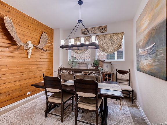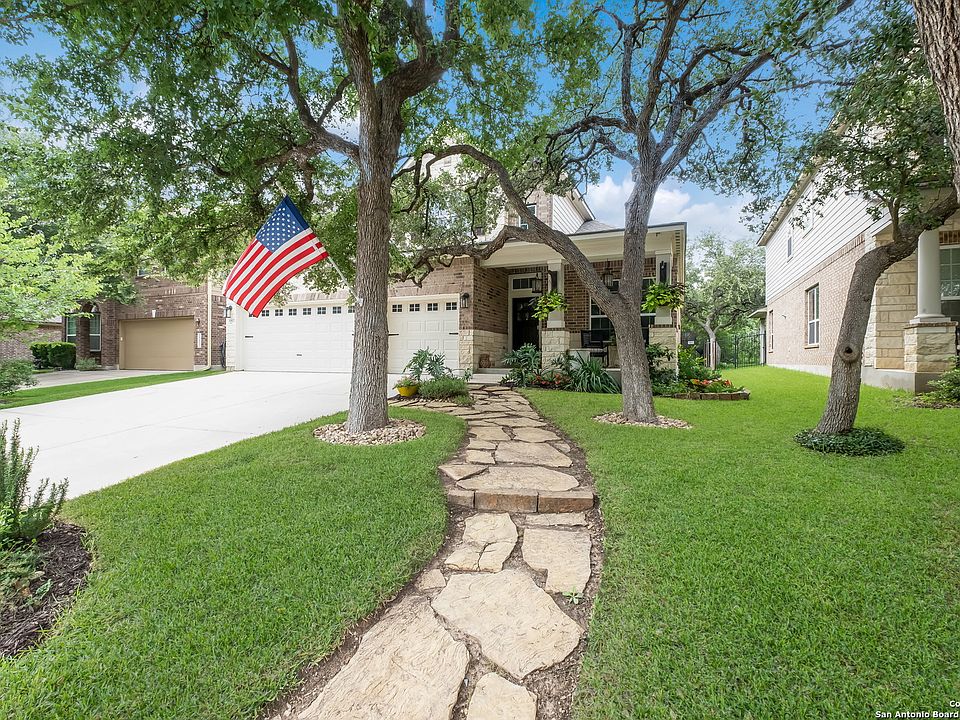 Tucked into a quiet cul-de-sac in Triana, 10627 Larch Grove looks like it leapt right off the cover of a magazine. Wrapped in mature trees, lush landscaping, and charming flagstone paths, this home welcomes you in with a front porch made for slow mornings and sweet tea. Inside, every corner feels personal and purposeful. The heart of the home is the oversized island kitchen-renovated in 2024 with show-stopping Level 4 granite, stainless steel appliances, and a walk-in pantry with plenty of custom built-ins for storage. Whether you're whipping up weeknight dinners, holiday feasts, or just reheating pizza with flair, this kitchen was built for it. Just off the kitchen, the cozy living room invites you to unwind beneath beamed ceilings, with built-ins for all your favorite things and a picture-perfect view of the greenbelt out back. The downstairs primary suite is your own private retreat, complete with a sunny bay window nook ideal for reading, dreaming, or the occasional well-deserved nap. Upstairs, there's space for everyone-with a full media room (currently outfitted with risers, surround sound, granite wet bar, and mini fridge), a game room, and a loft that's as flexible as your lifestyle. Need a quiet space to work? The dedicated study with French doors and vinyl flooring has you covered. Love to entertain? The sprawling back patio is already wired for a TV and gas-plumbed for your future outdoor kitchen. Gardeners will fall for the wrought iron gate and rose-draped pergola leading to the greenbelt-your own slice of nature, perfect for planting, playing, or just soaking it all in. Additional features include a spacious three car garage, full yard sprinkler system, radiant barrier roof, alarm system, new (in 2025) carpet in the primary bedroom and closet. new roof in 2023, new water heater in 2023, new garage doors + openers in 2023, two separate attic spaces for storage, new front elevation light fixtures (2025) and so so much more. This home is ready for a new owner to move in, hang some pictures on the wall and call it home. Same day showings available. With access to top-rated schools just steps away, and neighborhood amenities like a pool, park, and clubhouse, this home offers more than a place to live-it offers a lifestyle full of charm, community, and everyday magic.