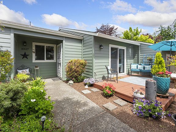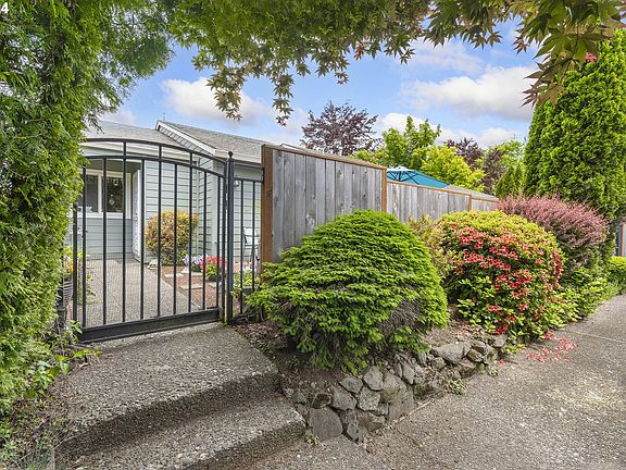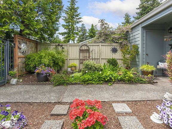 Rare One Level Townhome in great close in Tigard location. Gated front courtyard and private back courtyard. Light and airy living with vaulted ceilings and exposed beams. Large bedrooms with sliders to their own outdoor spaces. Updated kitchen with tile counters and granite island. New Interior paint in LR/DR/Kitchen. Mini Split New 2023. Garage is detached and oversized 2 car.