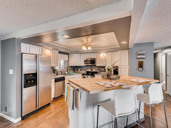 Wait until you see this 4 bedroom/3 bathroom open concept home. The home has been completely remodeled: Granite counter tops, custom island with butcher block top, new master bathroom, carpet, paint, landscaping, huge covered patio, fenced garden area, and NO HOA; the list goes on and on. The daylight basement allows for access to the garage and backyard. Don't let the backyard fool ya, it has been separated into two sections; one side for entertaining and one for the dogs. There is an attached 2 car over sized garage, a large shed, and a paved area in the backyard for RV parking or an extra vehicle. This one is a must see! Upper windows (8 in total) have been ordered and will be installed starting on 4/20/2019. Open house Saturday (3/30) from 10-1 and Sunday (3/31) from 10-1.