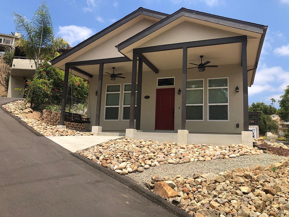 Do not disturb tenants! Showing by appointment on April 8th to prospective applicants with completed rental applications. Parking for two vehicles off-street. This is a beautiful 2 bedroom, 2 bath granny flat with a small fenced yard, tile flooring throughout, a covered front porch, and limited off-street parking in Mt. Helix. Beautiful white shaker cabinets, and stainless steel new appliances. Washer and dryer and large storage room inside the home. There is a fenced backyard with a concrete patio. Energy efficient new appliances. Pet upon approval. Owner pays for water and trash. All other utilities paid by tenant. Renters Insurance is required. Qualified applicants need a credit score above 700, good references, and sufficient income.