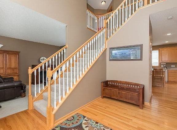 Walk-in large 2 story foyer with long 1/2 round window. Tall ceiling's. Front private office. Beautiful wood floors and trim. All the rooms are spacious, comfortable and vaulted ceiling in Master bedroom. Maintenance free deck with stairs leading to wide open fenced back yard. There is outdoor lighting in front and around the east side of home under trees. High tech computerized in ground sprinkler system sense's ground and weather to water only when needed. Garage is insulated and heated.