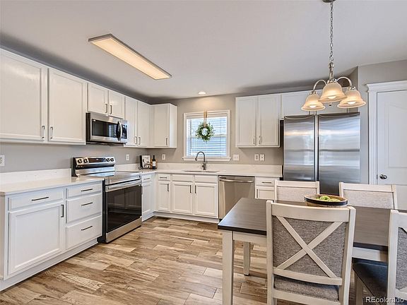 This 3 BD/2 BA Cottage Home in Belle Creek is as quaint indoors as it is outdoors and is better than new! Sitting on a tree-lined street, with open green space park across the street and another one to the side of the home. Like new with newly painted interior and exterior (2022), new carpet (2022). This kitchen will wow you with new Quartz countertops (2022) and newly painted kitchen cabinets and hardware (2023) and New Stainless Steel Appliances (2023). New bathroom waterfall sinks and Granite countertops (2022). Check out the large master suite with sitting area. Home sits walking distance from Belle Creek Family Center, Belle Creek Charter School (which continues to offer a 5-day school week), Ziggi's coffee shop and countless community parks. This home also sits in the boundary for the coveted and brand new Riverdale Ridge High School. Don’t forget to check out the Family Center. Great location, 20 minutes to airport or downtown. Home has been pre-inspected, sewer scope done and roof inspected and comes with a *1 year home warranty*.
