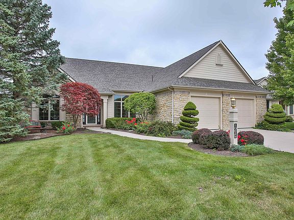New roof installed 6.12.24. New door hardware with towel bars, updated to brushed nickel, new interior paint, move in ready! Discover this exquisite villa offering single-level living free from the concerns of a lower level, perfectly blending maintenance-free serenity with elegant amenities. This spacious home boasts relaxing water views from the master bedroom, great room, kitchen, nook, and hearth room. With generously sized rooms throughout, elegant details such as columns, extensive crown molding, and 9' ceilings enhance the villa's charm. An upstairs 26 x 20 bonus room with a closet and full bath provides an ideal space for guests or a private retreat. The gourmet wrap-around kitchen with a breakfast bar opens to the hearth room, while a quiet patio with pergola offers a relaxing outdoor area by the pond. Ample storage is ensured with an large oversized 2-car garage, and the prime cul-de-sac location makes this a truly exceptional home on a great lot. Embrace luxury living with unmatched water views and premium features in this remarkable villa. Across the street from the YMCA, walking paths, groceries, restaurants and shopping. HOAs include trash removal, complete front flower beds upkeep and mulching, lawn care and snow removal.