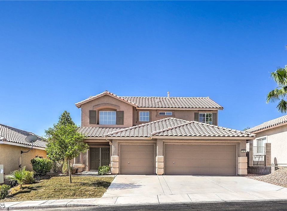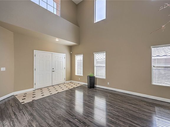 Spacious and beautifully maintained 2-story home in the heart of Summerlin! Features 3 bedrooms, 3 full baths, a downstairs den with double doors, and a 3-car garage. Enter into a formal living room with soaring ceilings, flowing into a formal dining room with wood flooring. The kitchen has granite countertops, stainless steel appliances, recessed lighting, white cabinets, a breakfast bar, and tile flooring. Adjacent is a cozy family room with a fireplace and ceiling light. Upstairs, all bedrooms are generously sized with plush carpeting. The primary suite includes a private balcony, walk-in closet, vaulted ceiling, and a spa-like bath with dual sinks, soaking tub, and a separate shower. Enjoy outdoor living with a covered patio and extra extra-large patio. Great for entertaining. Great location near schools, parks, medical facilities, parks, downtown Summerlin, and access to the interstate. Log in to Summerlink for more information.