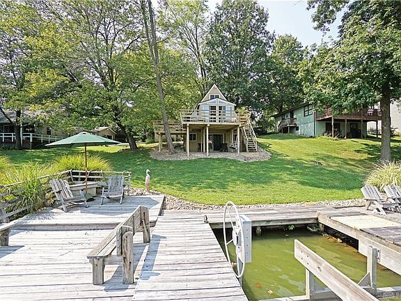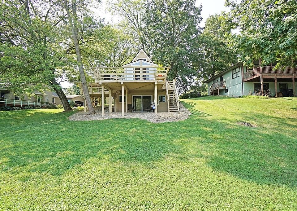 A truly unique and special waterfront lake house! Beautiful views of the lake from the living room, enclosed porch, deck, master bedroom, lower level patio and multi slip dock! An added bonus is the peace & serenity of a gorgeous water feature, covered deck with hot tub and deck on the street side! The large 3 car carport was constructed to be enclosed if so desired. And of course a shed for water toys! The property has been meticulously maintained and offers creative storage throughout!