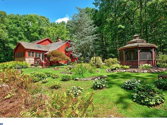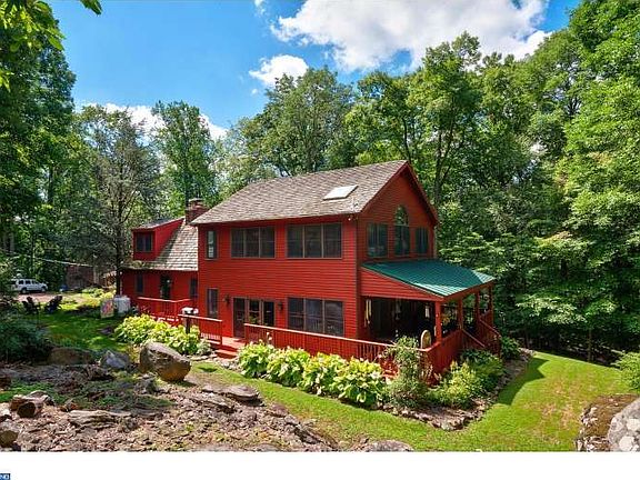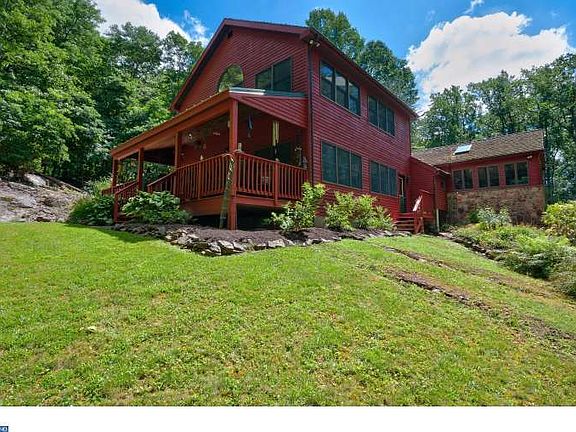 Welcome to your 10 acres of paradise... Inspired by nature, this home offers sweeping views creating a true sense of tranquility. As stately and bold as the trees that surrounds it, Camp Trail honors its intimate connection to the land offering both peaceful seclusion and unmatched convenience. In a country setting with panoramic views, yet minutes to everything, Camp Trail Road is a nature lovers dream. Imagine a relaxing walk to beautiful Lake Nockamixon for picnicking, swimming in the pool, hiking, biking, walking trails, fishing and boating. The open floorplan country home is wrapped with expansive decks for quiet enjoyment or large entertaining. Wide plank pine flooring, large masonry fireplace in the dining room and windows to capture every view provide interior warmth and character. First floor features a Sunroom/Breakfast Room that is open to the Kitchen, Dining Room and Great Room- perfect for family enjoyment or entertaining. 2nd floor loft space is perfect for office, hobby room or extra space for guests. With 3 bedrooms including a First floor guest room with full bathroom and huge Great Room, this home welcomes families of all sizes. Master Bedroom Suite with Jacuzzi Tub has 3 Walls of Windows and spiral staircase, and the 3rd bedroom with full bath complete the second floor. Home has had two additions that flow seamlessly into original home. NEWER HVAC, NEWER Roof, NEWER Windows, NEW Stain on Siding. Gazebo and Storage Shed for all of your tools and toys. Lush landscape is the perfect backdrop for the beautiful koi pond. Located equally between Doylestown and Lehigh Valley. You will begin to relax as soon as you enter this fabulous 10+ acre retreat. This is a dream come true for the lake enthusiast. The ideal get away or permanent retreat.
