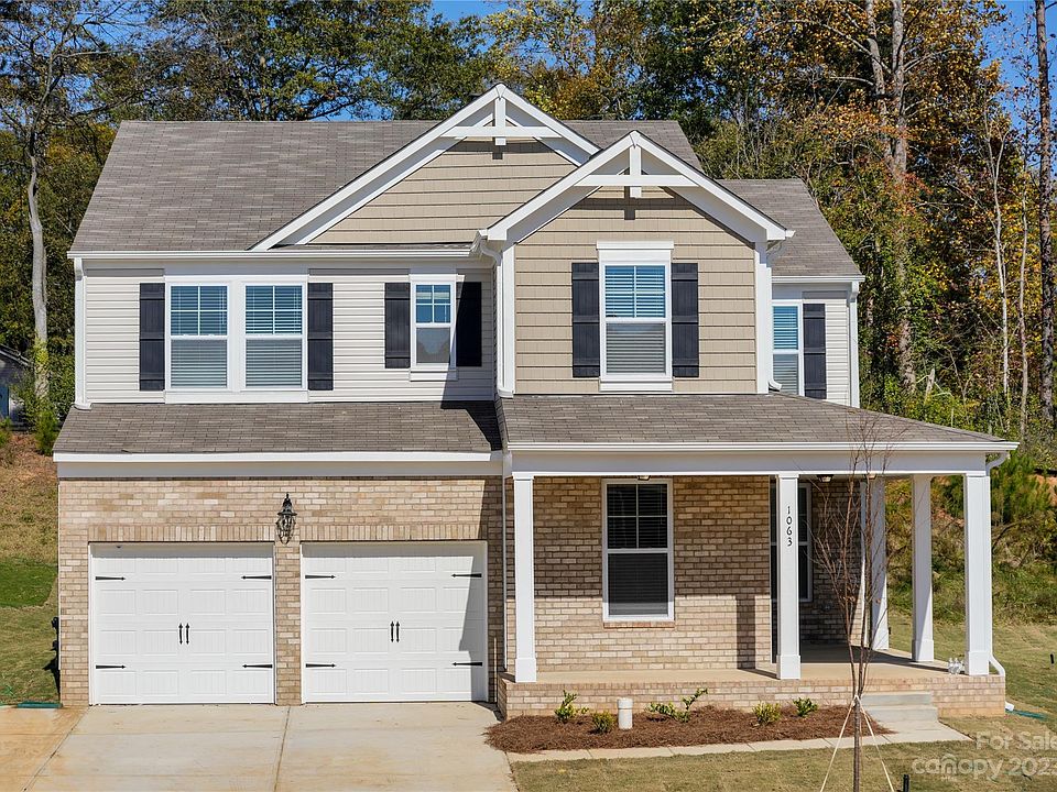 This home has 5BR and 3.5 baths with a spacious wrap around porch. There is a guest suite down with a private full bath. The main floor features 9' ceilings, 42" upgraded upper kitchen cabinets, quartz countertops, a large kitchen island with seating and engineered vinyl plank flooring. The family room has a beautiful stone fireplace. The butler's pantry is located off of the formal dining room. The flex room with glass bi-swing doors on main is perfect for a study. The primary bedroom up has a large sitting area and primary bath has a separate shower and garden tub with ceramic surround and ceramic tile flooring. Community is conveniently located just over a mile from Old Town Rock Hill, Winthrop University and Knowledge Park with many great restaurants, shops, breweries and entertainment options nearby.