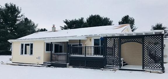 Garages and acreage only add to the appeal of this very nice property that is move in ready for you! Spacious ranch style home with 3BR and 2 1/2 baths. Nice size eat in kitchen with sliding doors to a two tierded deck with hot tub. The master bedroom has full attached bath with laundry. Beautiful family room with wood and stone accents. Finished basement with office,living room ,bar area and half bath. A 10 acre lot with additional acreage available, has two garages,one 32 x 48 with 15 ft ceilings and lean to off the back. Another 2 door, 2-4 bay garage, heated with kitchen and full bath.