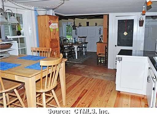 Great home sitting on 5 acres of picturesque land, newer windows and vinyl sided, wide boards through out the house, living room, dining room, bath room has a claw foot tub,fruit trees, garden area, building for storage, first floor laundry, wide wood floor boards, sed for storage, circular drive way, close to Sterling town line and RI.