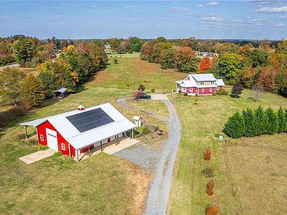 Serenity best describes this custom home on 9.6 acres just a short drive to town or 29 for an easy commute. The home boasts 2 primary suites on the main floor, with walk in closets and walk in showers. Jacuzzi tub in one bath and claw foot tub in the second. Zoned for horses/livestock this home has a large field where you can watch the wildlife. With a wrap around porch and another screened porch with a tv, there is ample outside living area Custom kitchen has a double oven, gas cooktop and a large island. The loft area can be used as bedrooms, office or craft rooms, with a jack and jill bath and a large seating area. A walkout basement has a kitchenette, full bath, washer/dryer and large living area. Equipped with its own parking area, a patio and separate entrance. 36x54 garage with full bath, porch on the front and a lean to for an RV on the rear. The garage has 3 overhead doors, and a shop. Solar Panels on the garage, and raised bed vegetable garden.