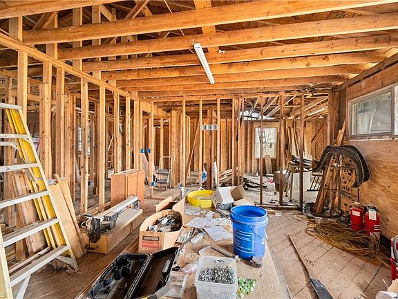 Blank slate house, fully gutted and ready for an investor to finish the renovations and reap the equity. Building materials on site come with the property - including shingles for the roof, siding materials and dimensional lumber. New heat pump and water heater are included. New windows already installed and the deck is largely finished. Unfinished basement and a 2 car garage for plenty of space. House used to have 3 bedrooms and 1 bath, but the renovation plan has it being rebuilt as a 3 bedroom and 2 bath.
