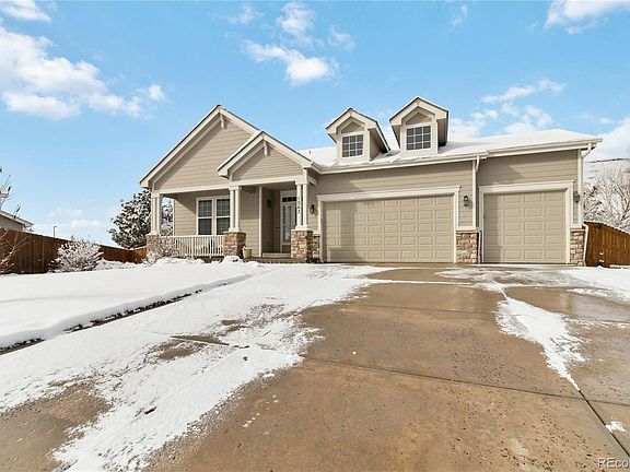 Move in ready ranch style home in Castle Rock's Crystal Valley Ranch. Open floorplan with great daylight. The main level offers a large and open family room with vaulted ceilings, sparkling white kitchen with stainless steel appliances, granite counters, pantry & breakfast area, separate dining room with decorative archways, 3 bedrooms, including the primary suite and updated primary bath with custom shower. The second full bath is updated as well with new counters & fixtures. The backyard features a spacious patio, fully fenced yard and mature landscaping. The 3 car garage provides ample parking & storage space. There is a full basement that is stubbed for a bathroom & an abundant amount of space and is ready to be finished for additional living space. The amenity rich Crystal Valley Ranch community is a great place to call home.