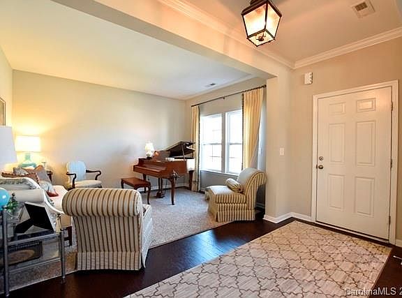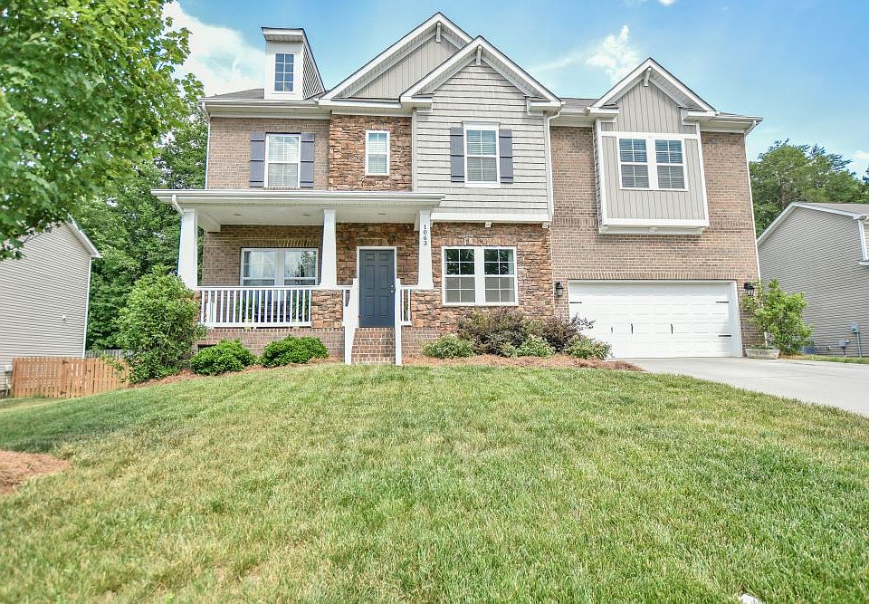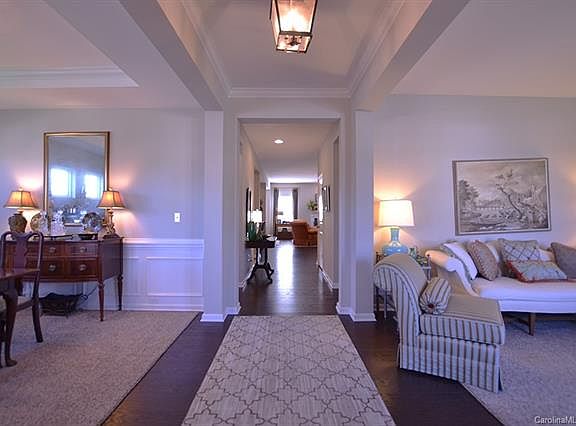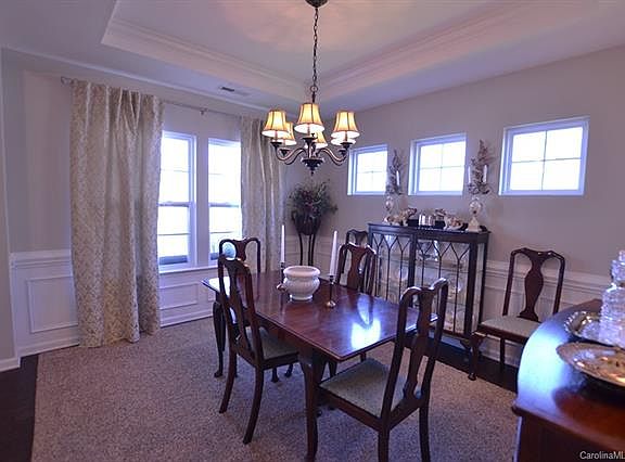 Perfect home for entertaining inside and out! Rocking chair front porch. Formalliving room could be home office. Custom upgrades include beautiful light fixtures,added storage under stairs, laundry room with beadboard and shelving. Incrediblekitchen is sure to please any cook with upgraded cabinetry, granite countertops, gascooktop, stainless appliances plus huge island with seating for 4. Master suite onmain level with tray ceiling and walk-in closet. Secondary bedrooms are upstairs anda large bonus room with antique plank wall. The private back yard includes anArchadeck deck and fenced back yard. Home is in a private section of community oncul-de-sac. Neighborhood amenities are close by. Clover Schools!