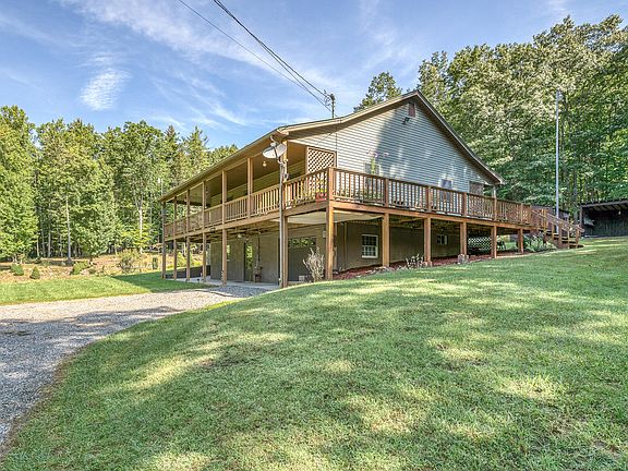 ATTENTION OUTDOOR ENTHUSIASTS! Come to the mountains of East TN! Nestled on +/- 32.62 UNRESTRICTED acres at the end of a dead end road, this home is a haven of serenity with a pond, two springs, a bold year round creek and carved in trails for ATV's, horse back riding and hiking. It offers the perfect blend of rustic charm and modern amenities. The open concepts design includes a spacious living room with gorgeous wood walls and ceilings that add warmth and character for a rustic cabin feel. The adjacent sunroom/dining room lets the natural light in and offers amazing views of the babbling creek and cleared area to the woodline to view the abundant wildlife of deer, turkey, etc. The squirrels will come and eat out of your hands! The large deck wraps around three sides of the home with access from four exterior doors as well as a portable handicapped ramp. It is an ideal spot for savoring your morning coffee while taking in the mountain air and listen to the creek. The 3 bedroom, 2 bath home offers 3 showers with one being wheelchair accessible. The bedrooms have cedar line closets and one has a built in bookshelf that could also be converted to an office. The first floor has the basement/laundry room/canning room/recreational room/mudroom has freshly painted walls and concrete floor with a bathroom and 1 car garage as well as a root celler. A detached 28x32 two car garage features electricty, skylights and wood stove is a fantastic bonus, providing ample storage space. Other notable features include a metal roof, water softener and newer-heat pump,LED Lights, hot water heater, well water holding tank, microwave, washer and dryer. Additonal structures include a 3 bay tractor/woodshed and 2 enclosed sheds. Many shrubs and a rock flower garden/raised garden bed w/built in bench to enjoy your plants. Start