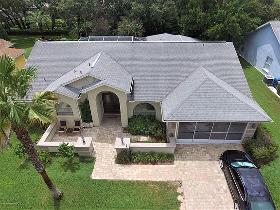 ACTIVE WITH CONTRACT Meticulously maintained, Move-In Ready 3/2/2 Windjammer Pool Home boasts over 2000 Living sq ft. The Impressive pavered drive and walkway leads to a popular courtyard area and Brand New Double Door entryway. The stunning wood floors and view of the pool greet you as you enter the foyer. This delightful Split plan offers both a Living Room and Family Room, Formal Dining Room, Open Kitchen features Granite Counter tops, Pantry, Kitchen Island, Breakfast Bar,Tiled Flooring, and the Breakfast Nook area overlooks the sparkling, heated in ground pool. The expansive Master Suite boasts a spacious walk-in closet and sliders to the lanai. The inviting Master Bath includes a Garden Tub and large separate walk-in shower, dual sinks with granite. Two Additional bedrooms also present Walk In closets for additional storage, and a guest bath that doubles as a convenient pool bath, and laundry room with utility sink. The alluring Lanai area features a summer kitchen with a Jenn-air grill and private pool area for enjoying the outdoor lifestyle Florida has to offer! The fenced in backyard, scattered fruit trees and lush landscaping are all an added bonus! Nothing to do here but have some Fun in the Sun!
