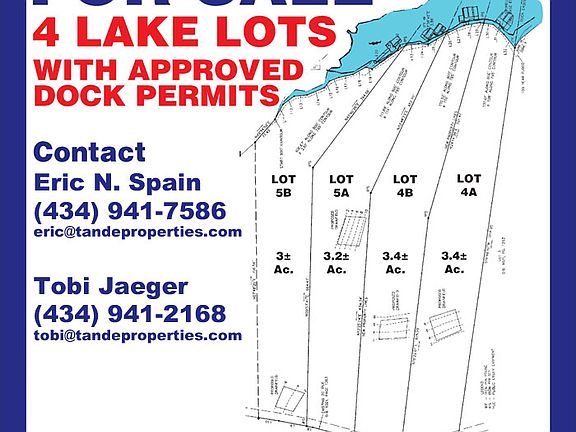 LAST ONE REMAINING!! Excellent Value! As low as $21k per acre wooded, waterfront property at Smith Mountain Lake. 3+ acres with current dock permits and soil tests. View details at TandEProperties. com Contact Eric Spain at 434-941-7586 Visit TandEProperties.com OWNER FINANCING AVAILABLE Contact Tobi at 434-941-2168. Thank you for your interest!