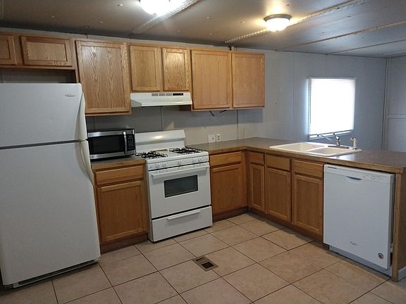 Two bedroom, one bath home with open kitchen/living area in center of home (bedrooms on each end). Fenced yard, off street parking and storage shed. Washer/dryer hookups available in home. Renter pays all utilities (water, gas, electric). Small pets OK with additional pet fee and monthly pet rent.