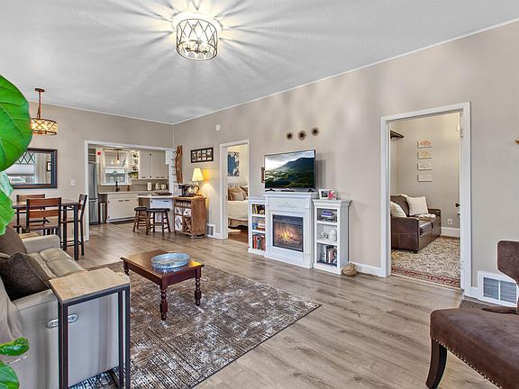Choice location & timeless curb appeal! This 1912 bungalow is situated on a large corner lot with old growth trees, darling exterior, and cozy covered front porch, providing an inviting entrance and a perfect spot for enjoying the morning sun! Step inside this welcoming home featuring 1768 sq ft. 3 bedrooms, 1 bath, comfortable main level living with high ceilings, big picture windows, solid surface flooring, and updated kitchen & bath. Great layout with nice kitchen, stainless steel appliances, quartz counters, vintage style fixtures, and immeasurable good vibes. Fantastic corner parcel (1 1/2 Lots) in downtown Coeur d’Alene with double car detached garage and out building/She-Shed. Fully fenced front & back yard with alley access and room to grow! Zoned for 800 sq ft. ADU. Non conforming room in basement perfect for creating a 2nd bathroom. Walk to Lake Coeur d’Alene, grocery stores, restaurants, vintage markets, art galleries, city park, and more! Exceptional home & land, make it yours!