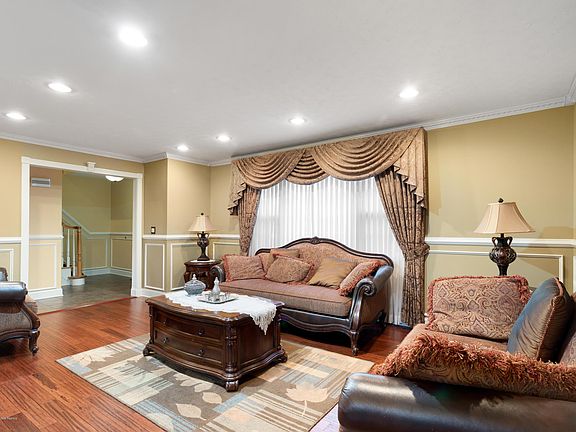 Luxurious and spacious home is just waiting for it's new owners! Living Room and Dining Room feature beautiful wood flooring, decorative moldings and large windows! The kitchen has granite counters, a six burner stove top - STONE accent wall, solid wood cabinets and plenty of storage. The family room has a beautiful STONE full wall corner gas FIREPLACE with sliders to a PRIVATE and SPACIOUS backyard. The family room is also open to the kitchen and has a door to the garage. Upstairs you will find and AMAZING MASTER SUITE with a PRIVATE BALCONY and another separate sitting area and a HUGE walk in closet. This is topped off with a SPA like bathroom with double vanity with STONE contemporary sinks, beautiful large tiled shower, bidet and skylight. The partially finished basement is a great