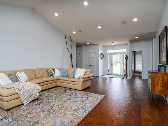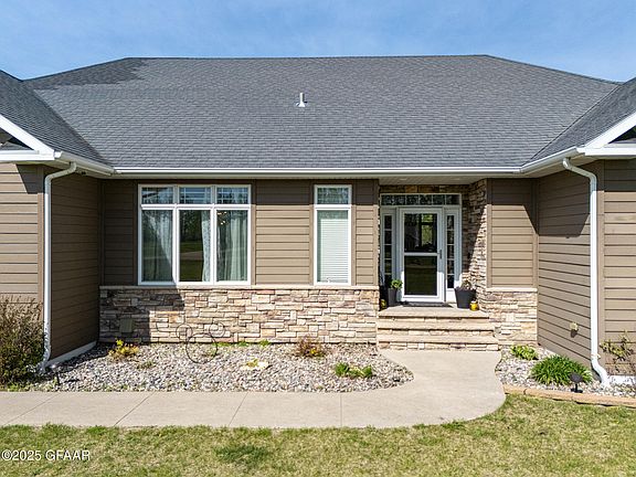 Serene rural setting on 2.72 acres just outside Grand Forks. This Garon custom-built 4,750/sf, 5 bed, 4 bath ranch-style home includes an Open & spacious layout, vaulted ceilings, fireplace, large master with soaking tub, tile shower, & walk-in closet. Finished lower level offers a family room, game room, & workout room. Fully finished 3 stall garage with heat, floor drains, & water hookups. 30x40 Morton building & Generac generator. Call today for a private showing!