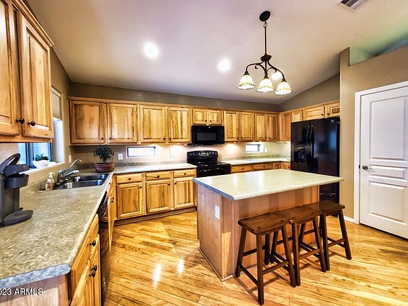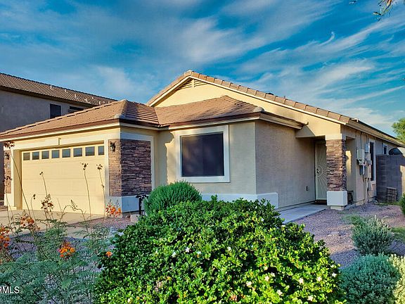 ASSUMABLE VA LOAN @ 2.25% FOR QUALIFIED VETERANS (approx $147K assumable). Don't miss out on this 4 bed/2 bath home in Buckeye. Recent upgrades include a NEW A/C unit and air handler (replaced in 2019), NEW roof (under-layment replaced/tiles repaired in 2022), and $46K solar system installed in 2019 that is PAID IN FULL. Huge savings to the new owners. This home also features an eat-in kitchen with island, breakfast bar, cabinets with pull out drawers, new kitchen faucet & newer flooring. Split floor plan with vaulted ceilings, neutral carpet, great room, master bedroom with full bathroom & walk-in closet. Low maintenance landscaping, covered patio in the backyard and a 2 car garage. Located close to shopping, restaurants and just a few min to the I-10 freeway.