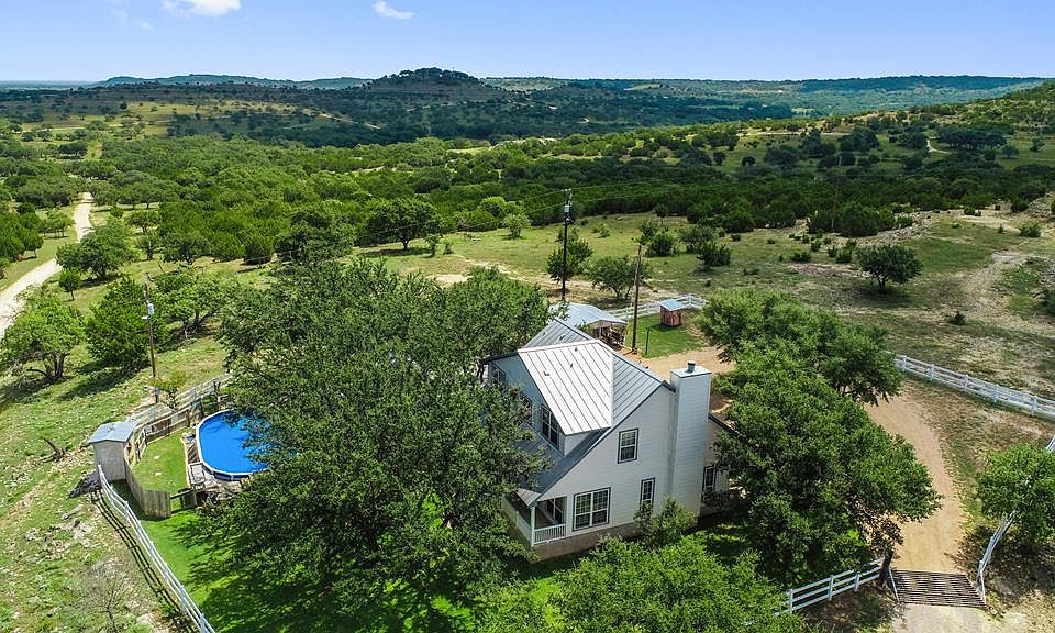 50+/- Acres w/Home, Pool, Barn w/Living Quarters & Monster Views! The property is unrestricted & has many potential uses. Main house 1818 SF 3BR/2BA w/front & back porches, 2 car carport & beautiful back yard. Above ground pool w/deck & 432 SF pool house w/water closet & loft. JAW DROPPING views from the Pool! 240 SF Man cave w/workout room, shop & greenhouse. 200 SF storeroom with shed for golf carts/utility vehicles. Huge 12,000 SF metal barn w/ 2368 SF two story Barndominium w/ 6BR/2BA. Huge deck off 2nd story, inside barn for storage. Less than 1 hour to Austin or Fredericksburg.