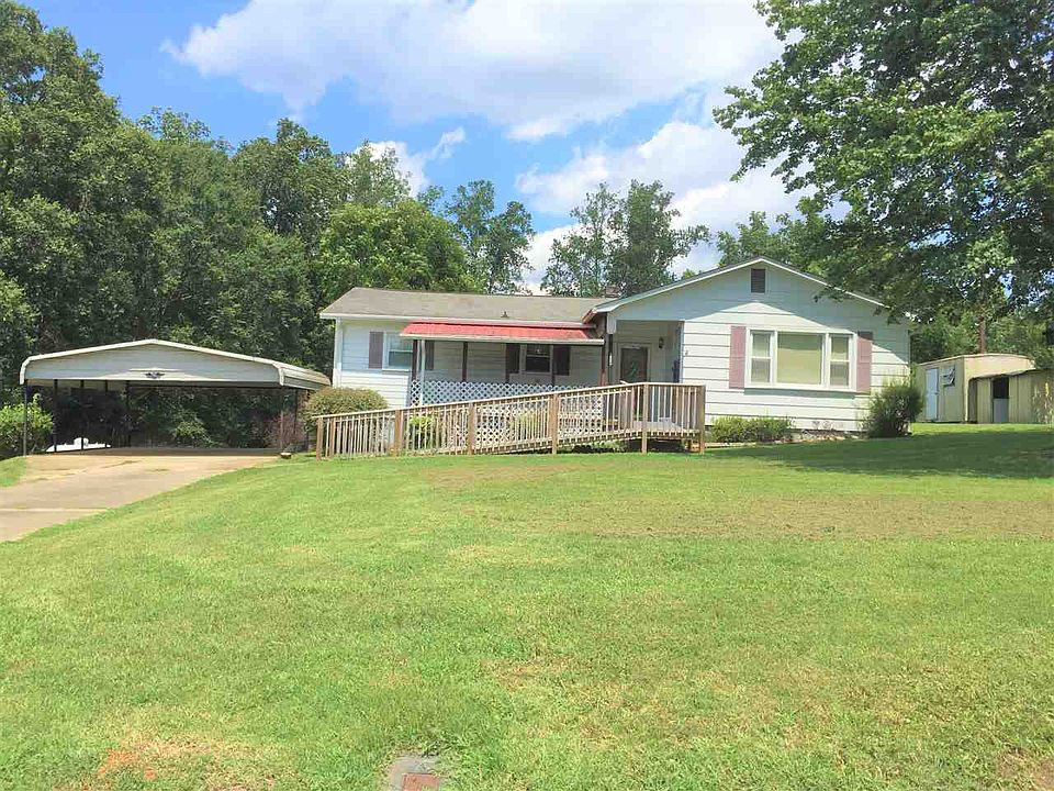 2BD/1BA home on 2.85 acres with a country feel but so close to shopping and major highways! Covered front porch with handicapped ramp welcomes you inside. Spacious living room has another door to the front porch, and french doors stepping down to the foyer. Kitchen with ample cabinets and large island/table! Dining area next to the kitchen was originally the 3rd. bedroom. Master bedroom and 2nd. bedroom with a hall bath with tub/shower! W/D hookup is in hall with access to the back door. Covered back porch! Double detached carport, and several out buildings. Concrete drive, and additional drive to the right of the house. Multiple garden sites to choose from! Perfect home for the first time buyer or someone wanting to downsize!