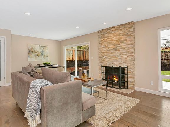 Experience Walnut Creek's sought-after Northgate community at its best in this stunningly updated home. Beautifully appointed throughout, you will love the open floor plan & contemporary makeover. Newly updated kitchen & bathrooms, new flooring, new heat & air & much more. Virtual Walk-Through Tour! Top rated schools & minutes to Walnut Creek's brand new Orchards shopping center! EXTERIOR Recently updated front and back landscaping includes: Fresh sod & bark; new irrigation; updated retaining wall; new concrete patio off of dining area; refurbished pergola over lower patio; and more! Fresh exterior paint. INTERIOR (general) General interior updating includes: New recessed lighting; updated dual pane windows; all new interior doors and baseboards; fresh electrical outlets and switches; new furnace and AC; and fresh interior paint throughout. MAIN LIVING AREAS This open floor plan is perfect for formal entertaining as it transitions seamlessly from the beautifully updated kitchen, into the formal living & dining areas with new birch denali engineered wood flooring and a beautiful stone fireplace. Recently remodeled contemporary kitchen features quartz counters; modern cabinetry; pantry closet; large center island; stainless steel appliances and overhead skylight. Informal dining areas include a kitchen nook & eat-in center island. Take a few steps down into the partially separated lower family room with new carpeting; wood burning fireplace; updated 1/2 bathroom; & a spacious nook perfect for a study area or wet bar (already plumbed). UPPER LEVEL Updated hall bathroom with new quartz countertop vanity and tub over shower with tile surround. Two large hall closets. Spacious front bedrooms with Mt Diablo views. Large master suite with dual closets and completely remodeled master bath featuring: tile flooring; updated modern vanities with quartz counters; wall-mounted commode; walk-in shower with tile surround, recessed niche and a channel drain.