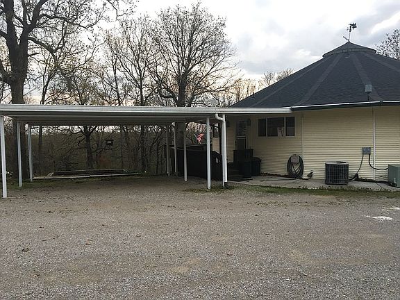 Back on the market, as buyer backed out after house passed all inspections with very minor findings. New roof Nov-2018 Unique round home, located on hilltop with wrap around deck, overlooking 2 acres of mature trees with lake view. Walk to Sunnyside boat ramp and park. Huge detached insulated garage/shop with concrete floor, electric RV hookups, and upper level storage. Home is all electric, with two heat pumps for heat/ac. Upper level has huge open kitchen/living area -- lots of cabinet space, granite, and floor-ceiling windows, two full baths - each with separate shower and jetted tubs, two bedrooms each with double closets, home office, and laundry room. Living area overlooks wrap around deck. Upper level also has a 2 car attached carport. Lower level has large game/entertainment room, kitchenette with island and granite, three bedrooms, and one full bath. Opens to concrete patio shaded by upper level deck. Located in Oologah-Talala school district.