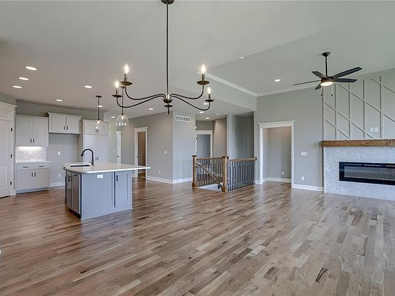 The Newbridge by Ernst Brothers - True Ranch with a 4th bedroom in the lower level. Three Bedrooms and 2 1/2 baths on the main level. As you enter you will see a wall of windows looking toward the east and green space. A nice wide entry leads you into the great room, kitchen and dining areas. An entry to the covered deck from your dining room provides easy access to enjoy some outdoor time. Beautiful kitchen with stainless appliance package, gas cook top, built in oven and microwave. There is a corner pantry plus additional pantry space with pull out drawers. A beautiful large island rounds out a perfect kitchen for the pickiest chef! The Primary bedroom has a large ensuite with fully tiled shower with dual shower heads, dual vanities and a large walk-in closet. Bedroom 2, at the front of the villa, has an adjoining full bath. Bedroom 3 is often used for an office/hobby space and has a half bath nearby. The lower level is beautifully finished with a 4th bedroom, bath with a shower and large rec room space. Still plenty of unfinished space for storage! Cadence Villas homeowners also pay the master association annual fee of $565. Room Sizes, lot size, taxes & sq footage are approximate. A Hunt Midwest Maintenance Provided Community. Most photos are from a different Newbridge. Finishes here may be different!